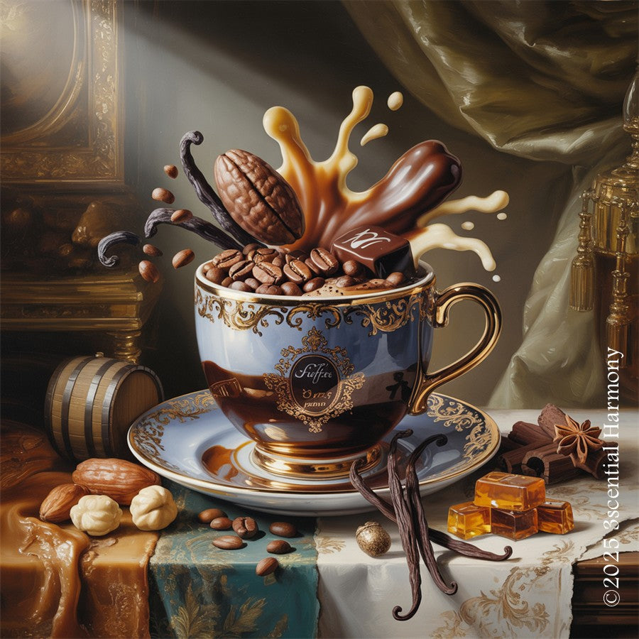 Like that first perfect sip of morning espresso that awakens every sense, Caffeine Addict captures the intoxicating rush of pure coffee obsession wrapped in luxury. This addictive creation opens with roasted coffee bean while dark chocolate and cacao create that familiar craving that never truly goes away. Smooth bourbon and creamy vanilla bean dance with golden caramel and brown butter as powdery orris root adds sophisticated refinement to the caffeinated heart. Precious oud and warm tonka bean embrace rich amber and sandalwood, while sensual musk creates a base as compelling as that undeniable need for just one more cup. Caffeine Addict is for those who embrace their obsession and understand that some addictions are worth celebrating.